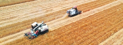 5月27日,農(nóng)機(jī)手在確山縣麥田里作業(yè)。弓華靜攝(新華社發(fā))