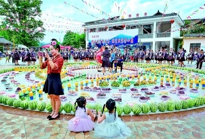 龍舟節(jié)上,人們跟著鼓聲跳起蘆笙舞。