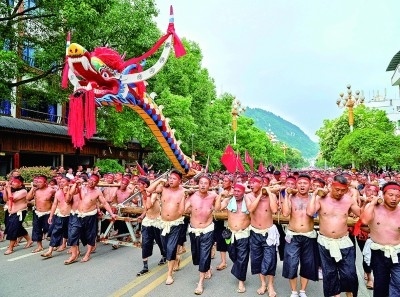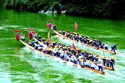 每年農(nóng)歷五月,在貴州省黔東南苗族侗族自治州的清水江流域,當(dāng)?shù)氐拿缱迦罕姸紩e辦苗族獨(dú)木龍舟節(jié)。龍舟節(jié)以水上龍舟競渡為載體,融合了苗族服飾文化、歌舞文化、飲食文化等,數(shù)百年經(jīng)久不衰,沿襲至今。2008年,苗族獨(dú)木龍舟節(jié)便被列入第二批國家級非物質(zhì)文化遺產(chǎn)代表性項(xiàng)目名錄。