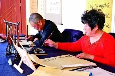 市民在社區(qū)文化中心練習(xí)書(shū)法。光明日?qǐng)?bào)記者 郭俊鋒攝