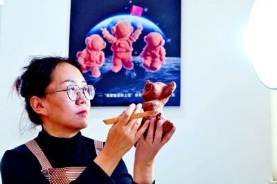 內(nèi)斂安靜的“有愚”、長(zhǎng)發(fā)飄飄的“九曲”、瞪眼齜牙的“八怪”、貌如蓮花的“鰱喜”……色如行云,線走流水,形貌精美,黃河的故事被魯婷巧妙繪制在不起眼的黃河石上,成為一件件惟妙惟肖的藝術(shù)佳作。