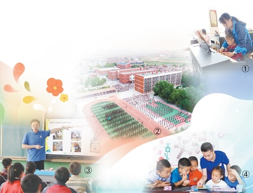圖①:潘苑給孩子們上鋼琴課。 受訪者供圖 圖②:海原縣關(guān)橋中學全貌。林宇陽攝(人民視覺) 圖③:唐曉宇給學生們上英語課。 受訪者供圖 圖④:林宇陽和學生們在一起。蔣逢洲攝(人民視覺)