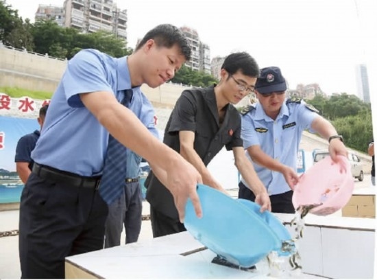 近日,梧州市龍圩區(qū)人民法院聯(lián)合區(qū)人民檢察院、梧州市農(nóng)業(yè)綜合行政執(zhí)法支隊漁政大隊,在西江梧州段水生生物放流平臺增殖放流魚苗。