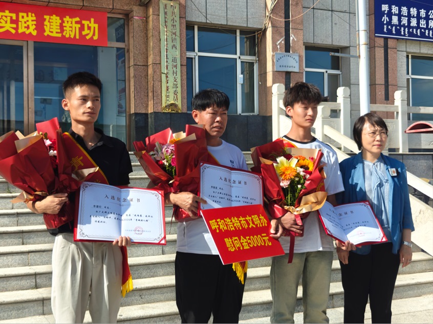 8月13日,張東霞來到玉泉區(qū)小黑河鎮(zhèn)西二道河村委會,慰問見義勇為的李春亞、李健壯、秦志翔3人,為他們送上鮮花、佩戴“青城好人”綬帶、頒發(fā)榮譽證書和“青城好人”獎?wù)?,授予“青城好人”榮譽稱號,并給予5000元慰問金,對他們在危難時刻勇救他人的行為給予肯定和贊譽。