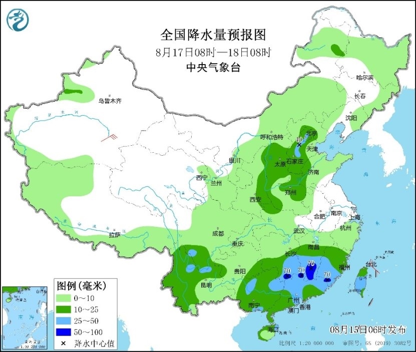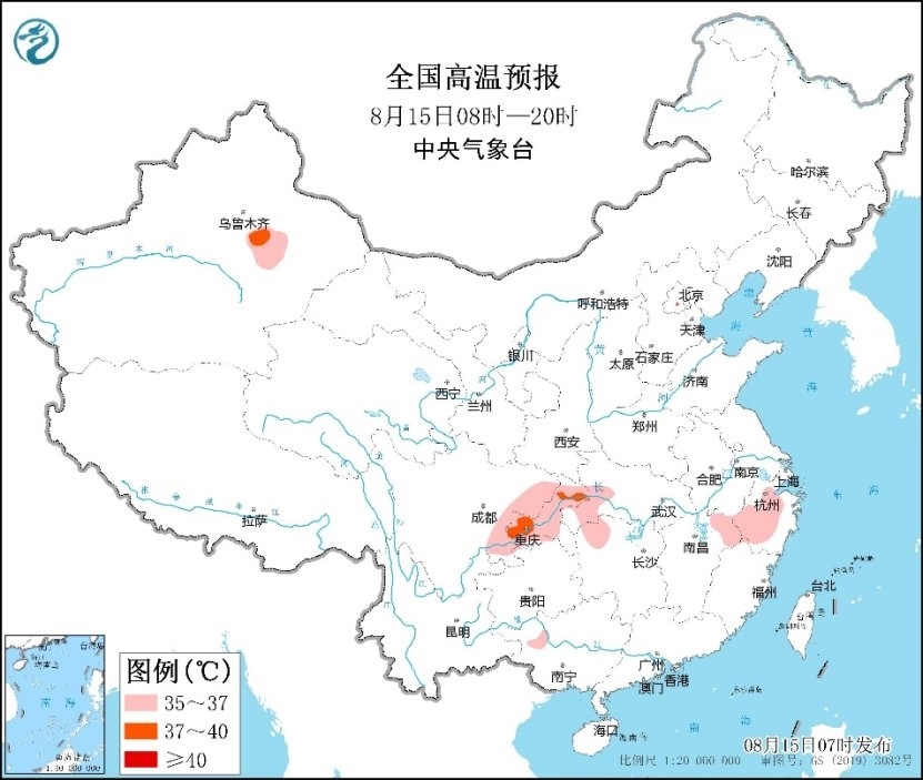 未來三天,江南南部、華南及四川盆地等地部分地區(qū)有分散性強降雨,并伴有強對流天氣,降雨強度大;西北地區(qū)東部、內(nèi)蒙古、華北、東北地區(qū)、黃淮等地有一次降雨過程,青海、甘肅、寧夏、陜西等地部分地區(qū)已出現(xiàn)較強降雨,需防范持續(xù)降雨和局地短時強降雨可能引發(fā)的次生災(zāi)害。由于副熱帶高壓減弱和降雨鋪展,高溫明顯減弱。高溫主要集中在四川盆地,湖北、湖南、浙江、江蘇等地雖有高溫,但范圍較小。