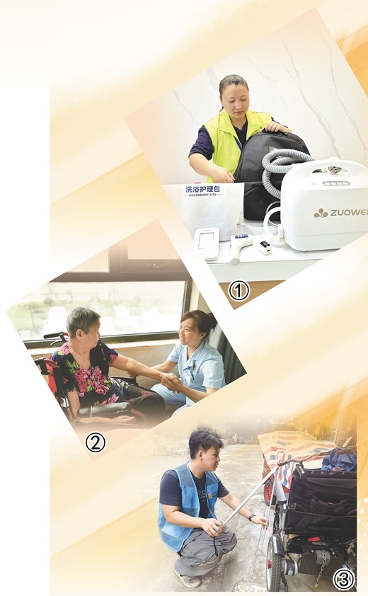 圖①:老年助浴員肖琳在店里收拾設(shè)備,準(zhǔn)備上門為老人助浴。冷智梅攝 圖②:健康照護(hù)師劉馳在為耿守愛老人進(jìn)行護(hù)理。本報(bào)記者 朱佩嫻攝 圖③:適老化改造評(píng)估師鐘晉軒在測(cè)量曾炳成老人的輪椅扶手高度。本報(bào)記者 洪秋婷攝