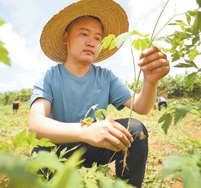 劉杰在查看前胡的生長情況。何志剛攝(人民視覺)