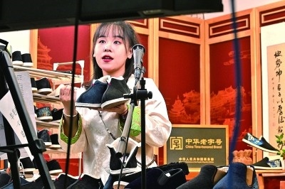 “大柵欄的游客多,每天約4000人來店光顧,其中有中老年,也有年輕人,還有寶媽帶著‘小不點兒’來買鞋的?!北本﹥嚷撋笨偨浝韽埦碍h(huán)說,據她觀察,不少年輕人如今也有了穿老布鞋的喜好,“我們在成都太古里首發(fā)了一款跨界聯名的布鞋,樣子新穎,比較時尚,一經推出便售罄了?!?/p>