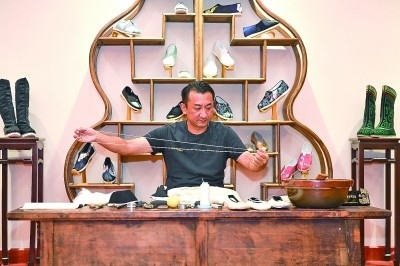 十多年前,26歲的蔡文科拜師學藝。幾年后,同期學藝的人陸續(xù)走了,他卻堅持了下來。吃了些苦頭、費了些心思,蔡文科出師了,還成為內聯升布鞋非遺傳承人。