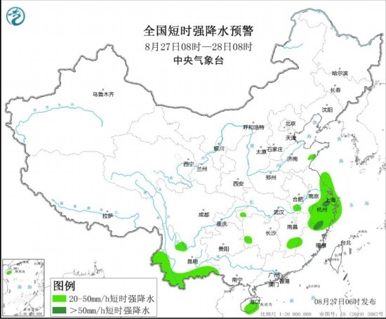 中新網(wǎng)8月27日電 據(jù)中央氣象臺網(wǎng)站消息,中央氣象臺8月27日6時發(fā)布強(qiáng)對流天氣藍(lán)色預(yù)警:預(yù)計8月27日8時至28日8時,內(nèi)蒙古地區(qū)東北部、江淮東部、江南東北部和南部、西南地區(qū)東南部等地的部分地區(qū)將有8級以上雷暴大風(fēng)或冰雹天氣;黃淮東部、江漢西部、江淮西南部和東部、江南中東部、西南地區(qū)南部、華南南部等地的部分地區(qū)將有小時雨量大于20毫米的短時強(qiáng)降水天氣,其中,浙江北部和南部、福建北部等地的部分地區(qū)小時雨量大于50毫米,最大可達(dá)80毫米以上。