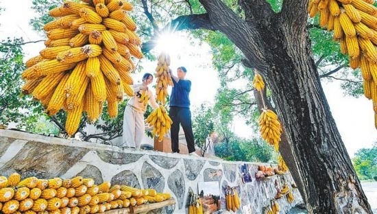 10月14日,河北省石家莊市鹿泉區(qū)段莊村舉辦曬秋民俗活動(dòng),吸引游客參與,同享秋日豐收時(shí)光。張曉峰攝(中經(jīng)視覺)