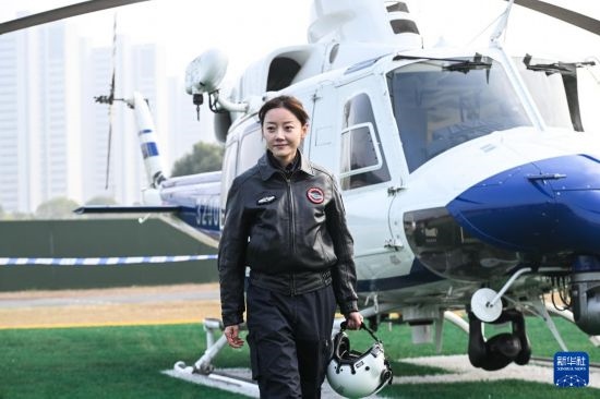 12月7日,女飛行員在飛行結(jié)束后走下直升機(jī)。