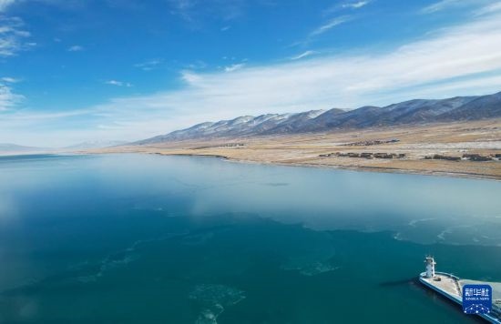 這是12月28日拍攝的青海湖二郎劍景區(qū)一角(無人機(jī)照片)。