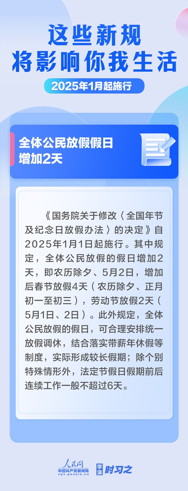 明確不授予學(xué)位或者撤銷學(xué)位的三種情形;支持優(yōu)先開發(fā)利用可再生能源;漸進式延遲法定退休年齡;完善自然科學(xué)基金資助制度……2025年1月起,這些新規(guī)施行,將影響你我生活。