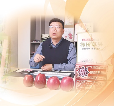 “我們的蘋果果形飽滿,咬上一口又甜又脆?!表n店鎮(zhèn)電商運營示范中心內(nèi),東門村駐村第一書記賈盛正在直播帶貨。