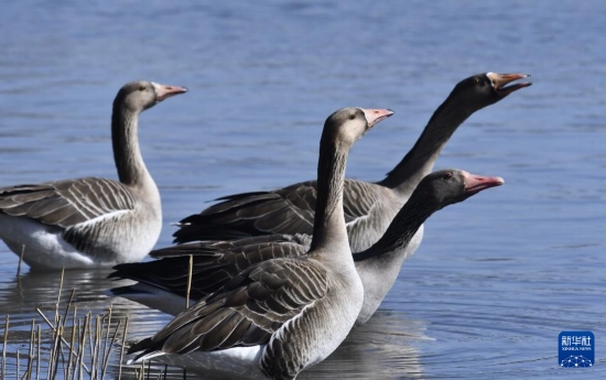 隨著天氣回暖,大批斑頭雁、灰雁、野鴨等鳥類來到北京奧林匹克森林公園的水面嬉戲、覓食。近年來,北京生態(tài)環(huán)境逐年改善,北京市境內(nèi)的濕地、河湖成為許多野生鳥類的棲息地。