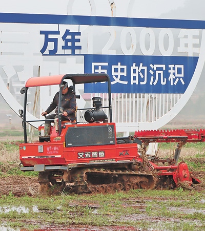 程忠仁駕駛農(nóng)機(jī)對(duì)稻田進(jìn)行深翻作業(yè)。