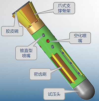“泵送式可回收管柱內(nèi)壁除銹工具”示意圖。