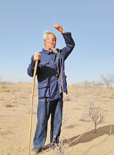 遠(yuǎn)望,方圓3里以內(nèi),再無(wú)人家;近看,地面上只露出20多厘米的“枯樹(shù)枝”,地下卻有三四倍的身量,在努力地發(fā)芽、生根,抓牢這片荒漠。