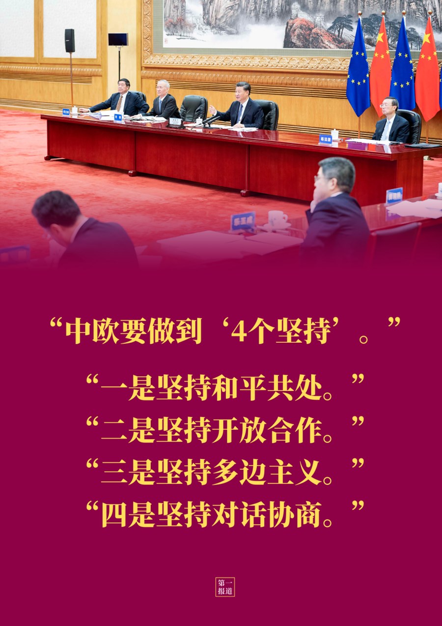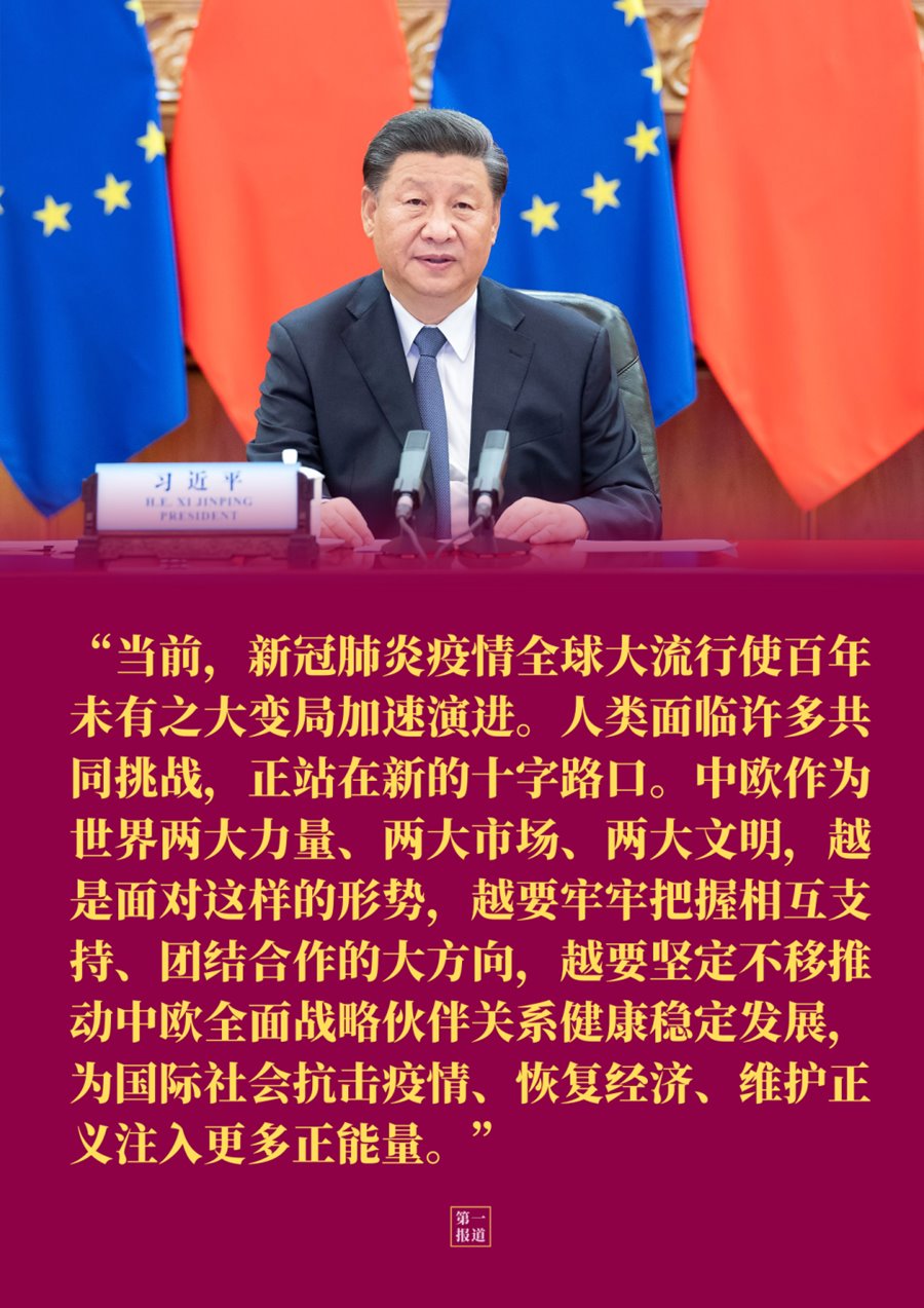 在14日晚這場“云會晤”中,習(xí)主席為下階段中歐關(guān)系指明方向,確定重點領(lǐng)域——