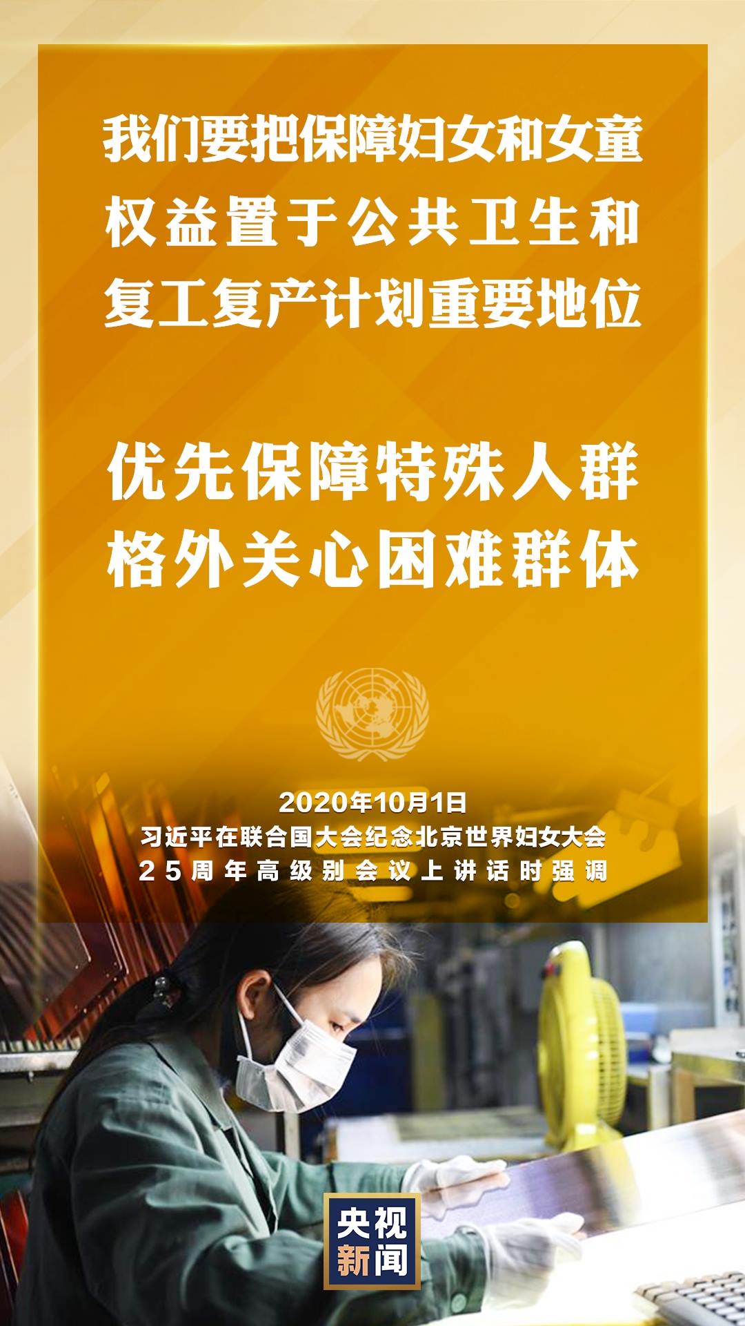 國家主席習(xí)近平10月1日在聯(lián)合國大會紀(jì)念北京世界婦女大會25周年高級別會議上通過視頻發(fā)表重要講話。就如何切實保護婦女權(quán)益,習(xí)近平提出中國主張。