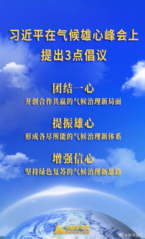 12月12日,國家主席習近平在氣候雄心峰會上提出3點倡議。