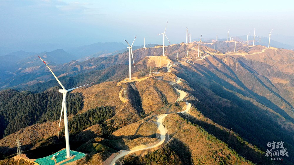 △廣西柳州,三江侗族自治縣大力發(fā)展清潔能源產業(yè),一字排開的風力發(fā)電機成為侗鄉(xiāng)新地標。