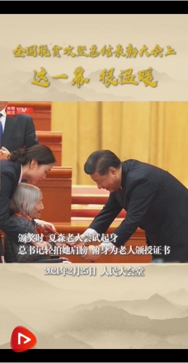 習近平在總結(jié)表彰大會上莊嚴宣告:“經(jīng)過全黨全國各族人民共同努力,在迎來中國共產(chǎn)黨成立一百周年的重要時刻,我國脫貧攻堅戰(zhàn)取得了全面勝利!”