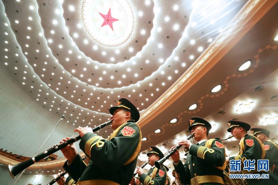 3月5日,第十三屆全國(guó)人民代表大會(huì)第四次會(huì)議在北京人民大會(huì)堂開幕。這是軍樂團(tuán)在演奏。新華社記者 張玉薇 攝