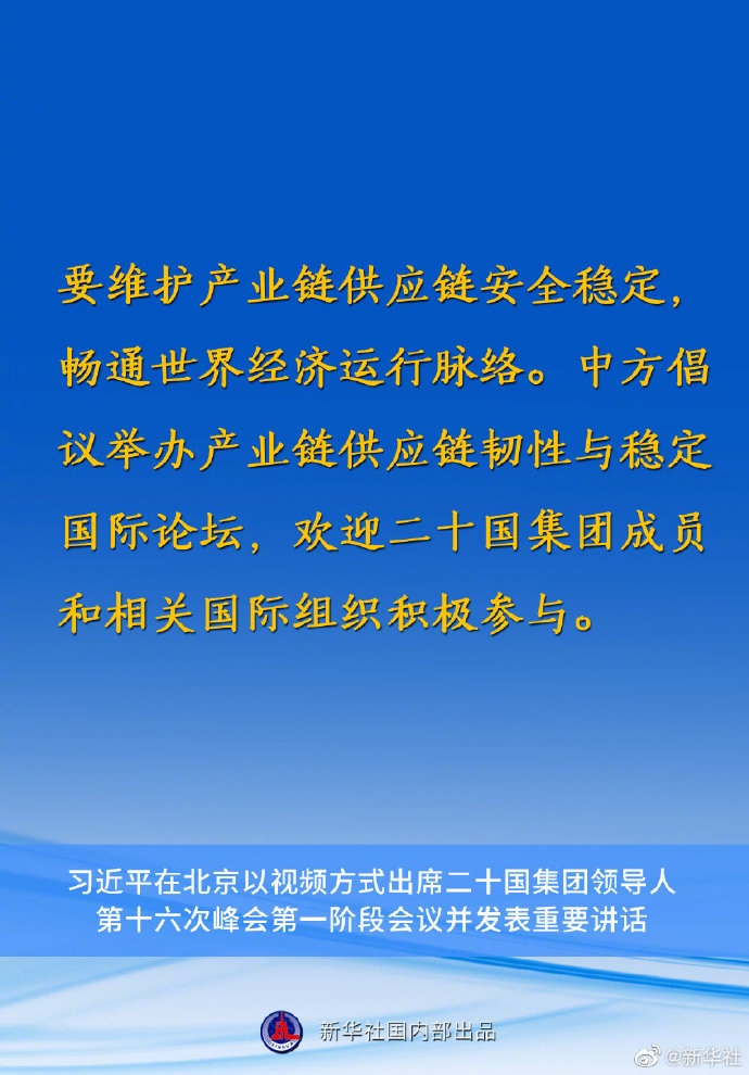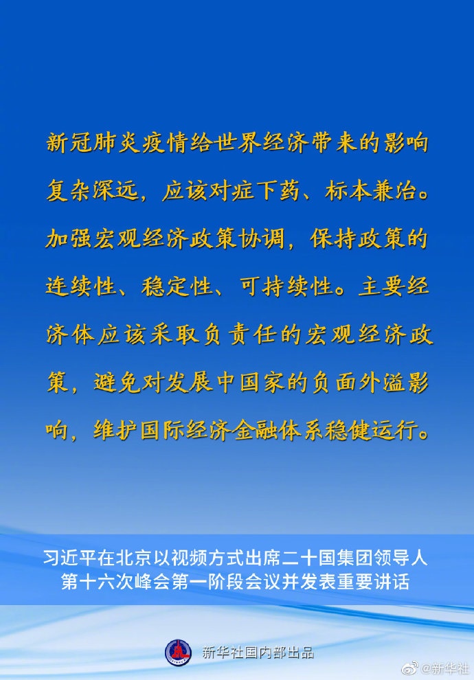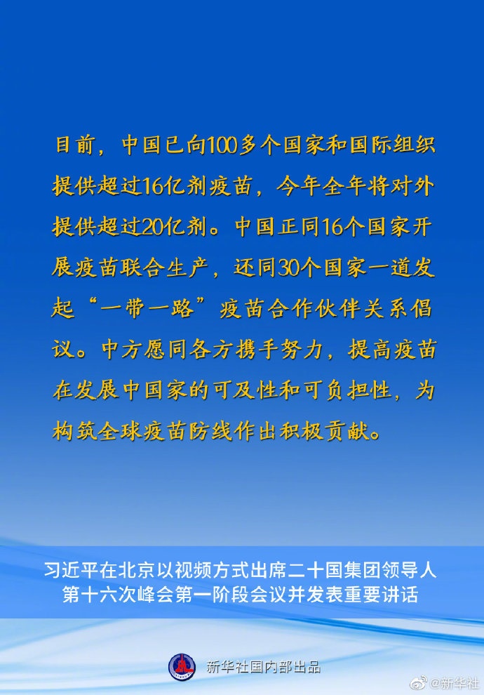 國家主席習(xí)近平10月30日在北京以視頻方式出席二十國集團領(lǐng)導(dǎo)人第十六次峰會第一階段會議并發(fā)表重要講話。講話有哪些要點,一起來看↓