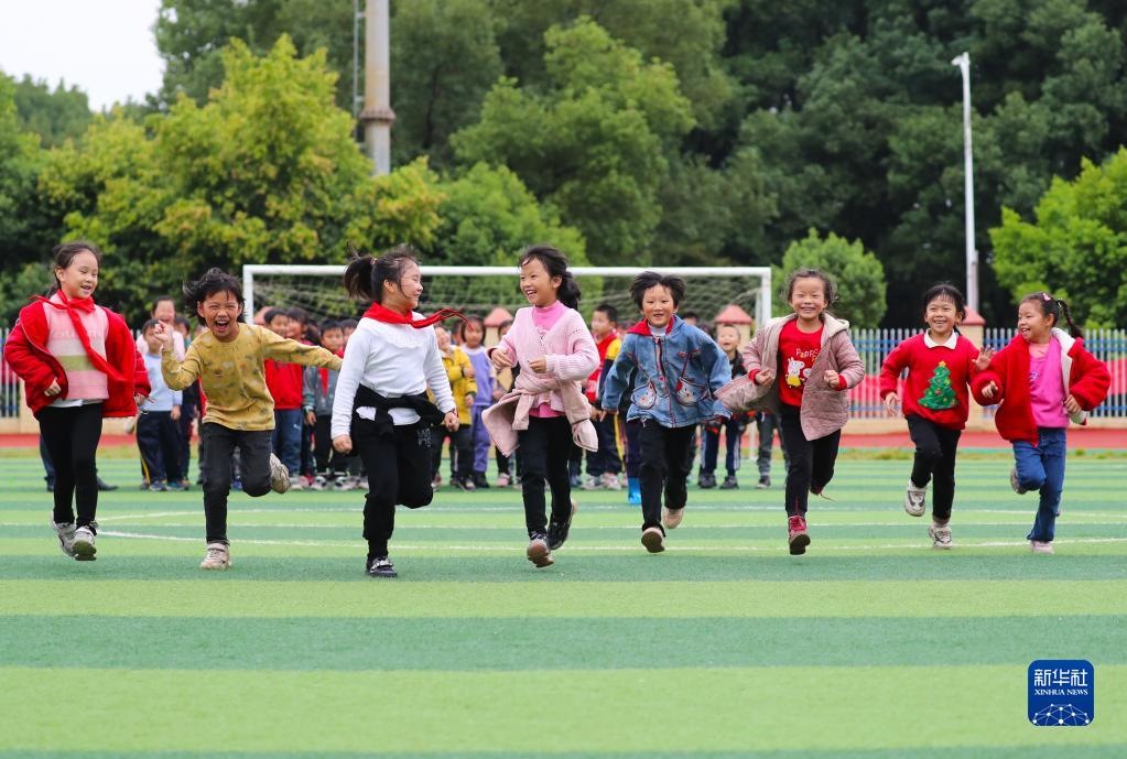11月4日,在湖南省永州市新田縣雙碧小學,孩子們在運動場上做游戲。今年秋季學期開學以來,各地積極落實“雙減”政策,利用課后服務時間開展內(nèi)容豐富、形式多樣的課外活動,促進學生全面發(fā)展。新華社發(fā)(劉貴雄攝)