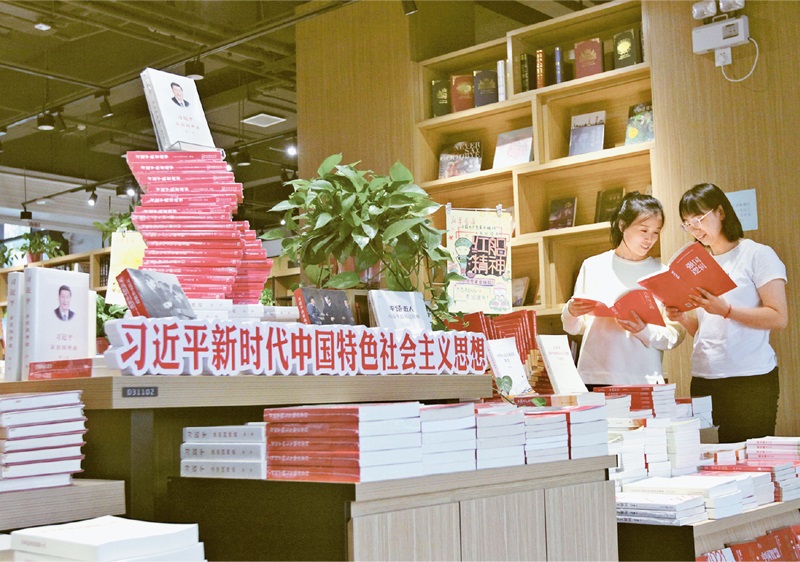 黨確立習(xí)近平同志黨中央的核心、全黨的核心地位,確立習(xí)近平新時代中國特色社會主義思想的指導(dǎo)地位,反映了全黨全軍全國各族人民共同心愿,對新時代黨和國家事業(yè)發(fā)展、對推進中華民族偉大復(fù)興歷史進程具有決定性意義。圖為2021年10月4日,河南省焦作市博愛縣新華書店里,讀者在閱讀習(xí)近平新時代中國特色社會主義思想相關(guān)書籍。 中新社發(fā) 程全/攝