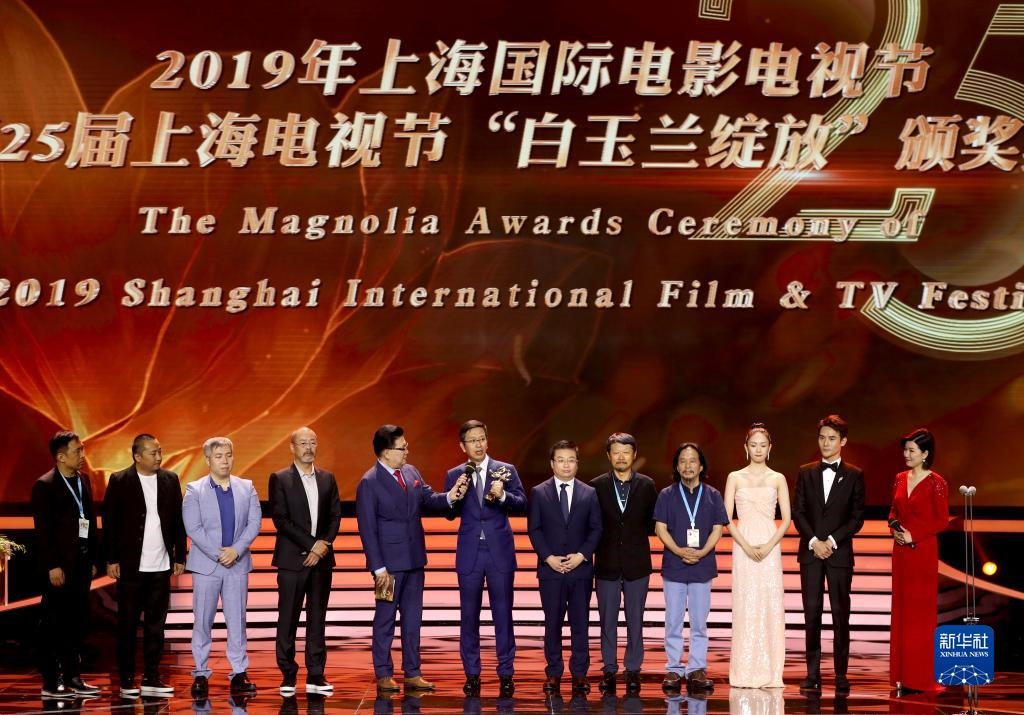 2019年6月14日,第25屆上海電視節(jié)落下帷幕,獲得“最佳中國(guó)電視劇”的《大江大河》主創(chuàng)上臺(tái)領(lǐng)獎(jiǎng)。新華社記者 劉穎/攝