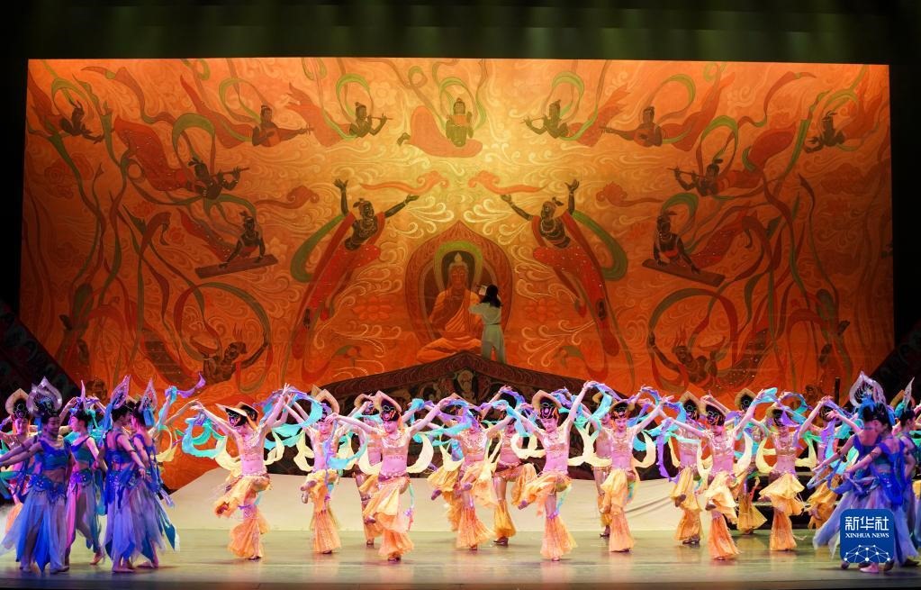 2020年1月9日,在美國(guó)紐約林肯劇院,演員在媒體預(yù)演上表演《大夢(mèng)敦煌》片段。新華社記者 王迎/攝