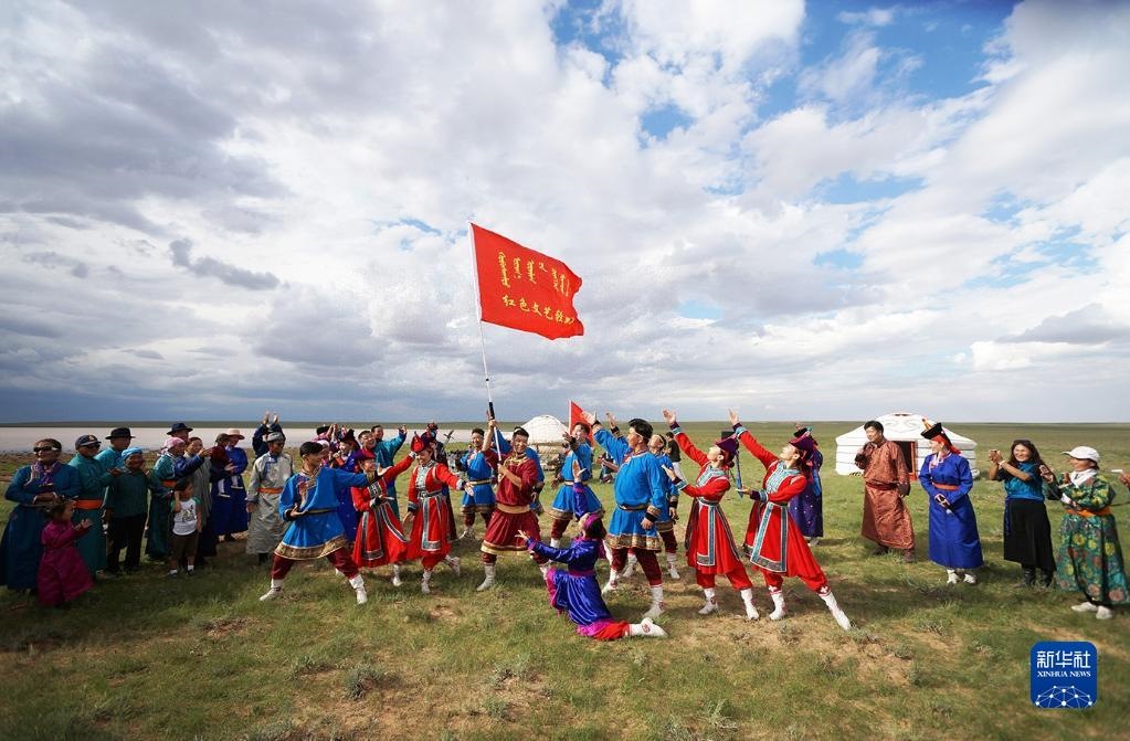 蔚藍(lán)的天空下,紫紅色的蒙古舞袍隨風(fēng)漫卷,馬頭琴琴聲悠揚(yáng)飄蕩,內(nèi)蒙古的廣袤草原上,一支支烏蘭牧騎為群眾唱響動(dòng)人牧歌。60多年來,烏蘭牧騎隊(duì)員們始終扎根生活沃土、服務(wù)牧民群眾。