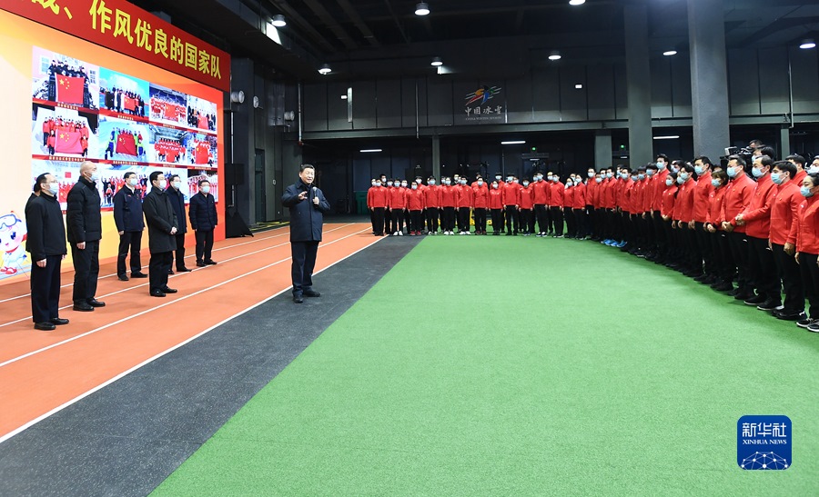 1月4日,中共中央總書記、國家主席、中央軍委主席習(xí)近平在北京考察2022年冬奧會(huì)、冬殘奧會(huì)籌辦備賽工作。這是4日下午,習(xí)近平在二七廠冰雪項(xiàng)目訓(xùn)練基地速滑館,向參訓(xùn)運(yùn)動(dòng)員、教練員表示慰問。新華社記者 謝環(huán)馳 攝