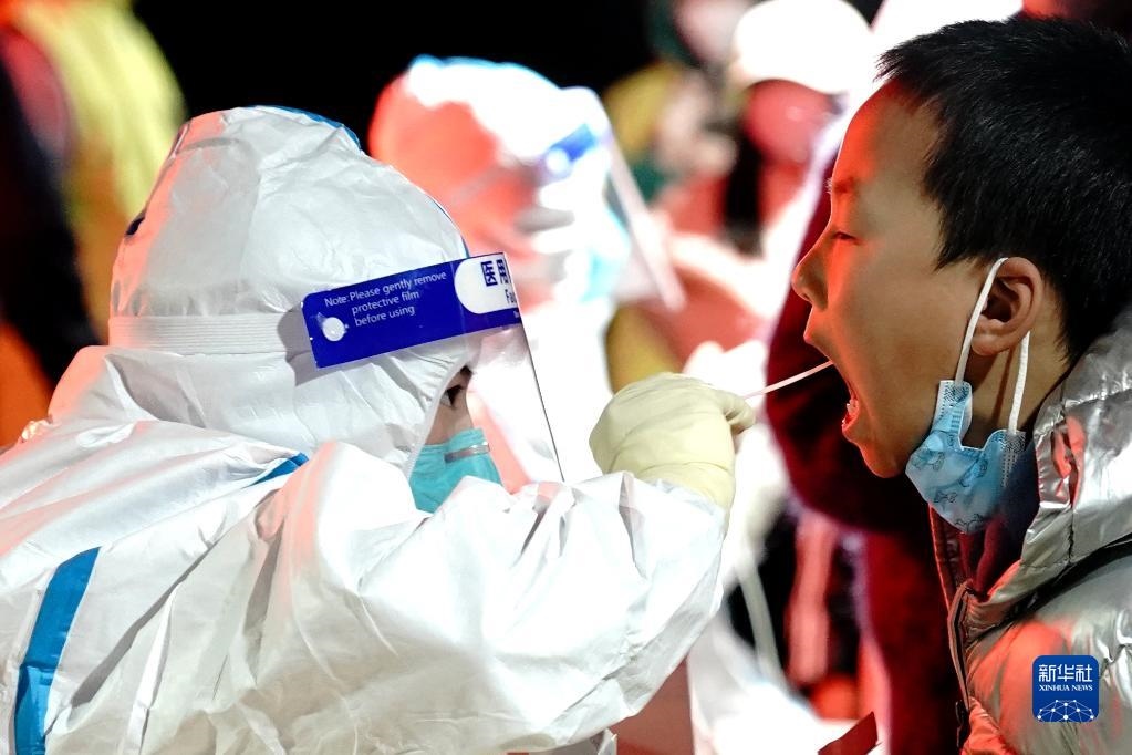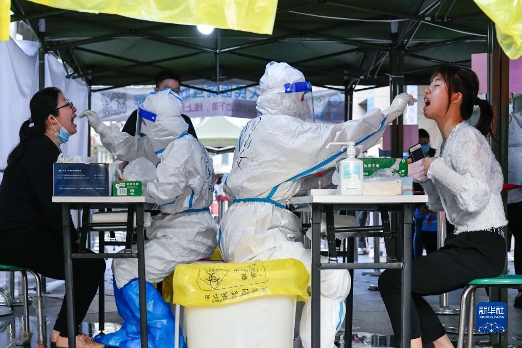 3月13日,在深圳羅湖區(qū)向西村核酸檢測點,醫(yī)務人員為居民進行核酸采樣。新華社發(fā)(儲焱攝)