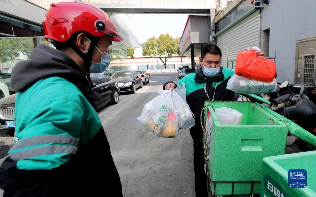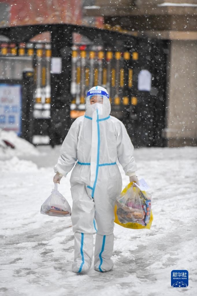 3月15日,吉林省吉林市昌邑區(qū)興華街道中興社區(qū)網格員宋冉為隔離居民運送生活物資。新華社記者 張楠 攝