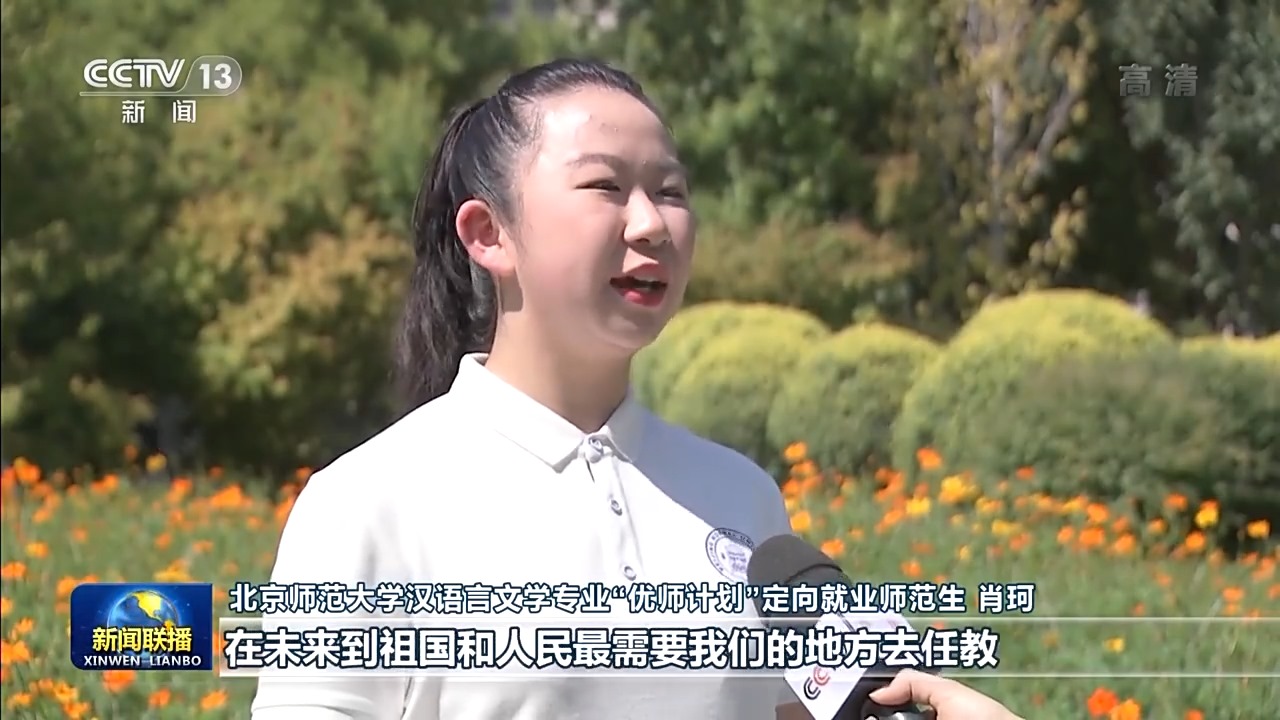北京師范大學(xué)漢語言文學(xué)專業(yè)“優(yōu)師計(jì)劃”定向就業(yè)師范生肖珂:總書記勉勵(lì)我們?cè)鲩L傳道授業(yè)解惑本領(lǐng),在未來到祖國和人民最需要我們的地方去任教。我定不負(fù)囑托,努力學(xué)習(xí),在畢業(yè)后回到我的家鄉(xiāng)。