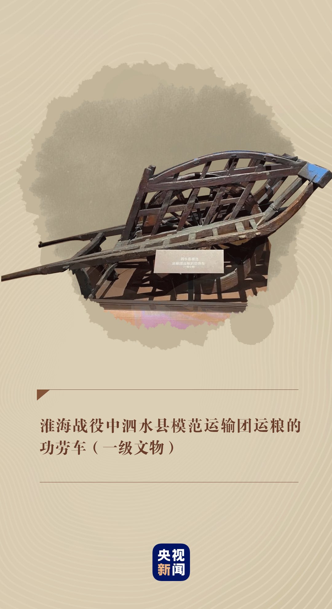 在中國(guó)共產(chǎn)黨歷史展覽館,靜臥著一輛淮海戰(zhàn)役中泗水縣模范運(yùn)輸團(tuán)運(yùn)糧的功勞車。它向人們講述著當(dāng)年硝煙彌漫的戰(zhàn)場(chǎng)上,人民群眾團(tuán)結(jié)一心,用一輛輛小車推出戰(zhàn)役勝利的感人故事。