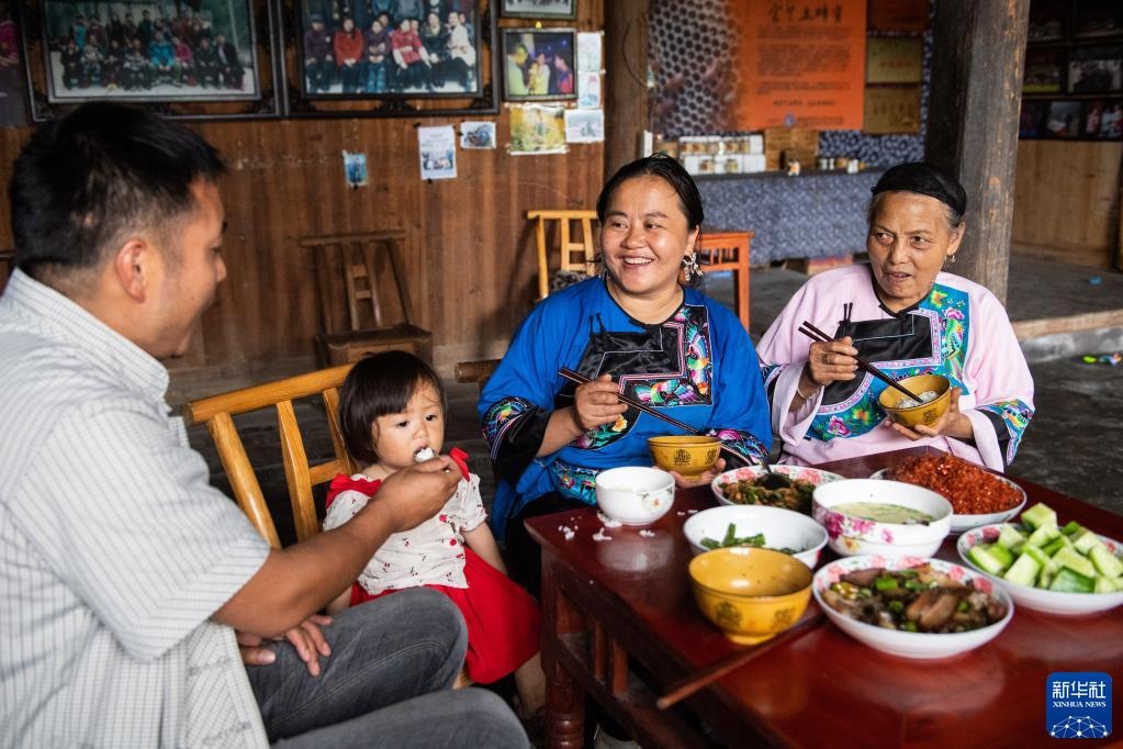 湖南省湘西土家族苗族自治州花垣縣雙龍鎮(zhèn)十八洞村一戶村民在吃午餐(2021年7月1日攝)。新華社記者 陳思汗 攝