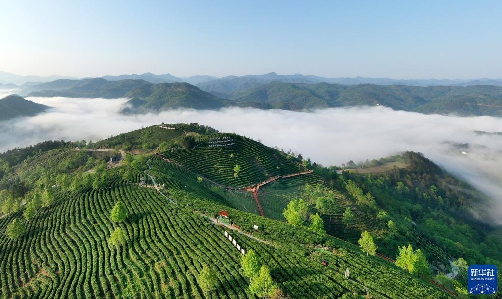 陜西省安康市平利縣老縣鎮(zhèn)蔣家坪茶園(2022年4月5日攝,無人機(jī)照片)。新華社記者 陶明 攝