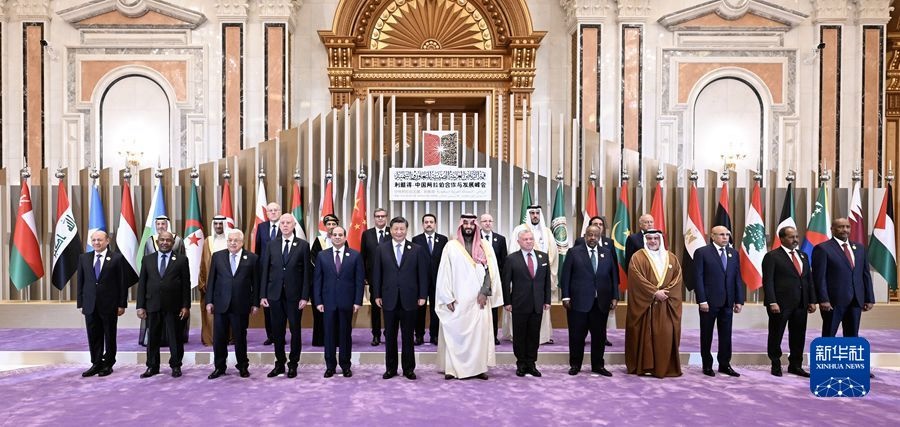 當?shù)貢r間12月9日下午,首屆中國-阿拉伯國家峰會在沙特首都利雅得阿卜杜勒阿齊茲國王國際會議中心舉行。國家主席習近平和沙特王儲兼首相穆罕默德、埃及總統(tǒng)塞西、約旦國王阿卜杜拉二世、巴林國王哈馬德、科威特王儲米沙勒、突尼斯總統(tǒng)賽義德、吉布提總統(tǒng)蓋萊、巴勒斯坦總統(tǒng)阿巴斯、卡塔爾埃米爾塔米姆、科摩羅總統(tǒng)阿扎利、毛里塔尼亞總統(tǒng)加茲瓦尼、伊拉克總理蘇達尼、摩洛哥首相阿赫努什、阿爾及利亞總理阿卜杜拉赫曼、黎巴嫩總理米卡提等21個阿盟國家領(lǐng)導人以及阿拉伯國家聯(lián)盟秘書長蓋特等國際組織負責人出席峰會。習近平在會上發(fā)表題為《弘揚中阿友好精神 攜手構(gòu)建面向新時代的中阿命運共同體》的主旨講話。新華社記者 謝環(huán)馳 攝