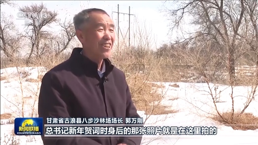 甘肅省古浪縣八步沙林場場長 郭萬剛:總書記新年賀詞時(shí)身后的那張照片就是在這里拍的,他叮囑我們要把身體保護(hù)好才能把沙治好,把日子過好,治沙就是為了更好的生活。