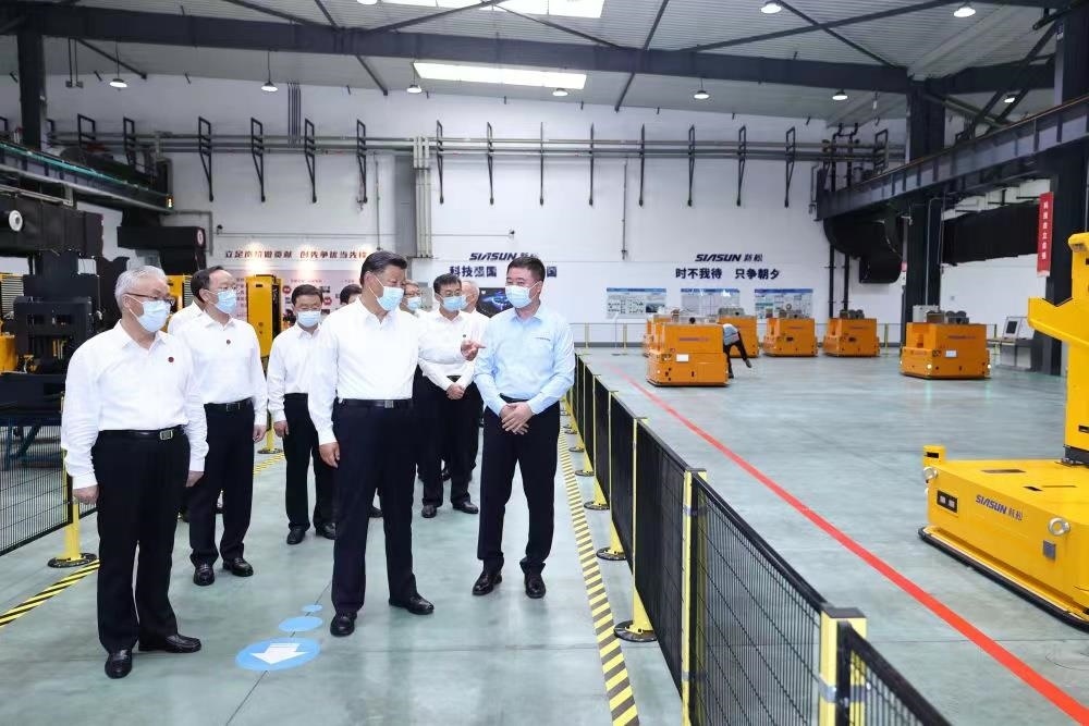 △2022年8月17日,習近平總書記在遼寧沈陽新松機器人自動化股份有限公司生產(chǎn)車間考察調(diào)研。
