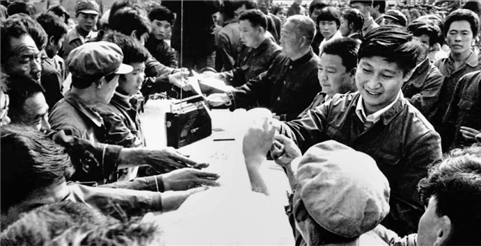△1983年,時任河北正定縣委書記的習近平,臨時在大街上擺桌子聽取老百姓意見。