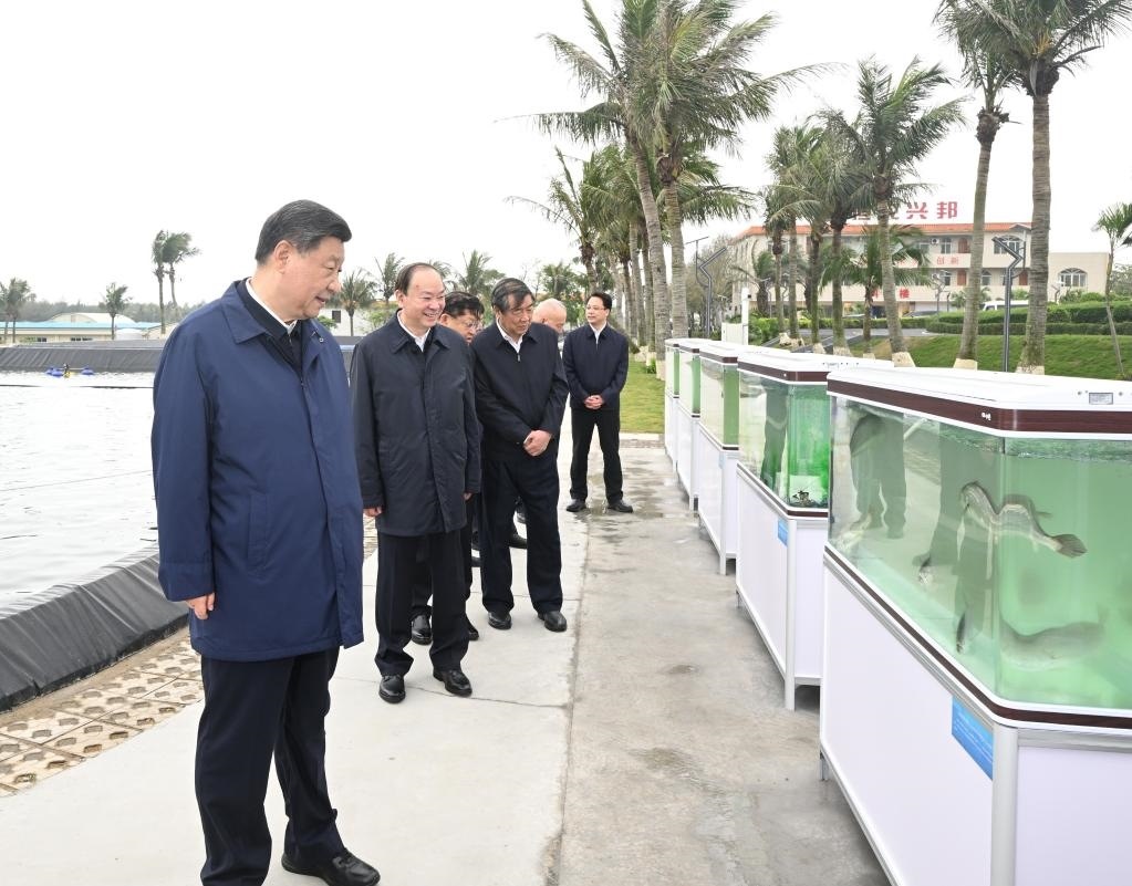 這是習(xí)近平總書記4月10日在廣東省湛江市國家863計劃項目海水養(yǎng)殖種子工程南方基地了解當(dāng)?shù)匕l(fā)展海洋漁業(yè)情況。新華社記者 李學(xué)仁 攝