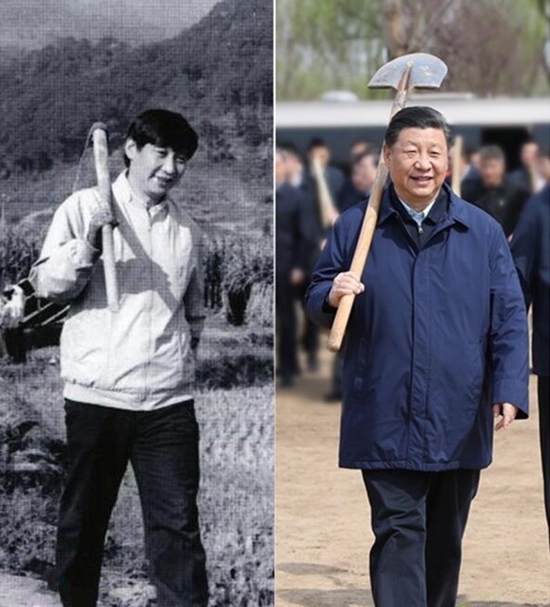 在河北正定,到鄉(xiāng)村考察時(shí)趕上鄉(xiāng)親們鋤地、間苗,習(xí)近平拿起鋤頭、擼起袖子就跟鄉(xiāng)親們一起干起來(lái),手法和老農(nóng)一樣熟練;在福建,他在田間地壟同群眾一起勞作,在閩侯參加閩江下游防洪堤加固工程的勞動(dòng)……