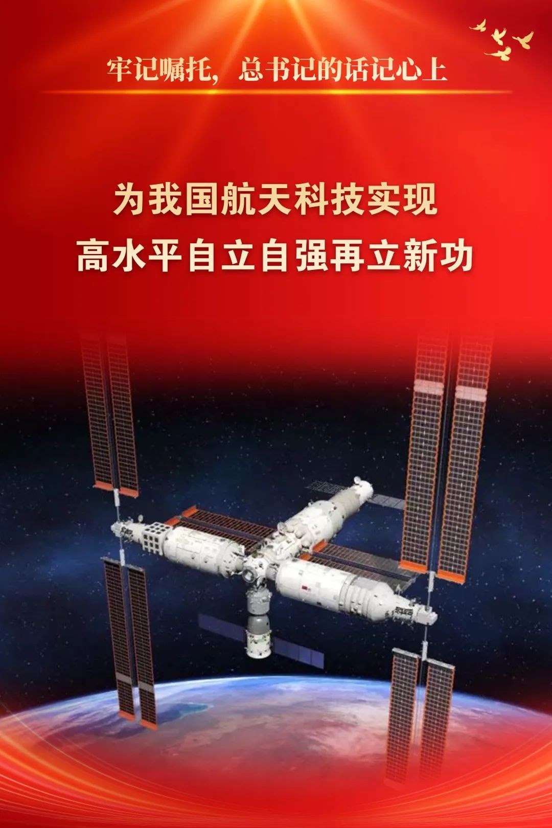 新時代是奮斗者的時代。進(jìn)入新時代,在以習(xí)近平同志為核心的黨中央堅強(qiáng)領(lǐng)導(dǎo)下,在習(xí)近平新時代中國特色社會主義思想指引下,中國航天牢記殷切囑托、錨定強(qiáng)國目標(biāo),自信自強(qiáng)、守正創(chuàng)新,取得了以載人航天、探月探火、衛(wèi)星導(dǎo)航為標(biāo)志的重大成果,不斷創(chuàng)造新的歷史,為推動我國進(jìn)入創(chuàng)新型國家行列、加快實現(xiàn)高水平科技自立自強(qiáng)貢獻(xiàn)了航天智慧、航天方案、航天力量。