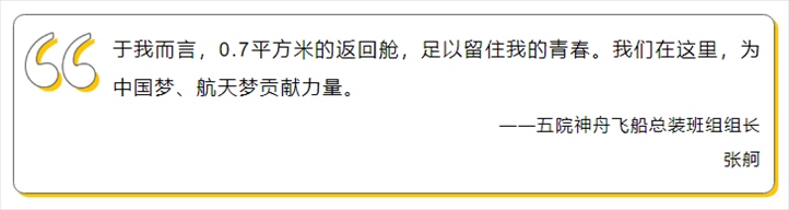 這是張舸在關(guān)艙門前送給航天員的祝福。飛船即將起飛,張舸從塔架撤離,回望一眼飛船,那一刻,責(zé)任感與使命感油然而生:“是所有航天人幾年的辛苦付出,我們才有機(jī)會在發(fā)射前同航天員道一句祝福。”